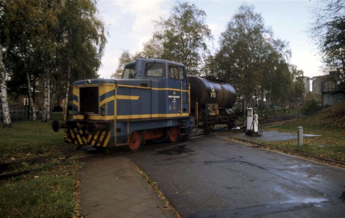 This locomotive is a diesel shunting loco built by the company Linke-Hoffmann-Busch, Salzgitter, originally delivered to the Salzgitter-Chemie GmbH. The company used to operate a chemicals processing factory adjacent to the station of Melbeck-Embsen, near L