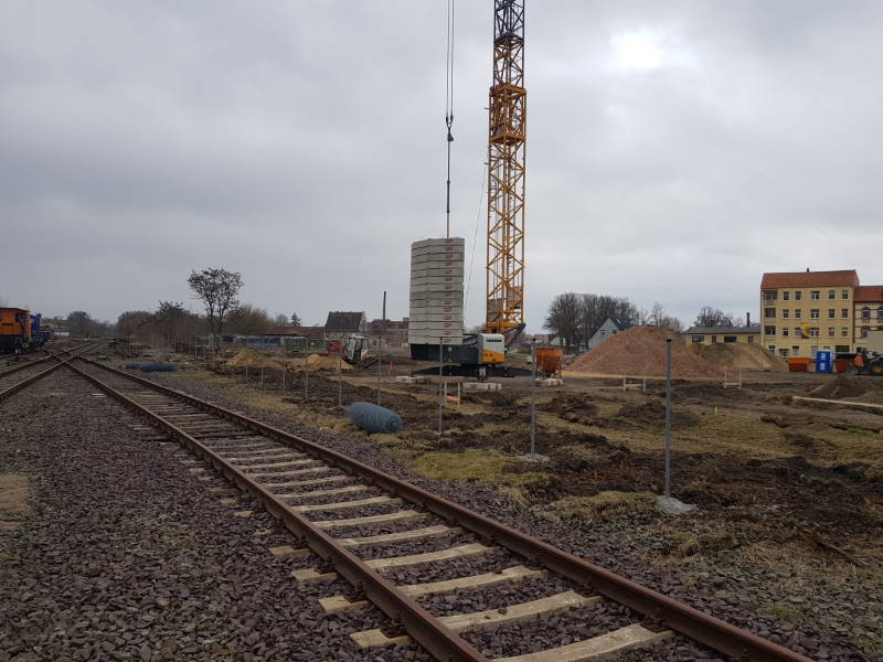 Baugeschehen etwas anderer Art ereignet sich gerade auf der ehemaligen Magdeburger Bahnhofseite. Auf dem Gelände der ehemaligen Güterrampe und des Milchhofs wird ein Supermarkt mit dazugehörigem Parkplatz errichtet. Aus diesem Grund wurde auch unsere Grundstücksgrenze etwas verlegt und der Zaun versetzt.