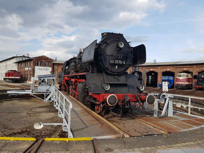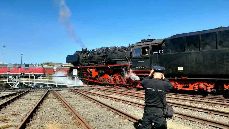 On the Friday before the event, our operable exhibits were rigged. They were loaded with coal, the water tanks were filled and they were cleaned. Steam locomotive 50 3570 was also decorated because it is celebrating its 80th birthday these days.