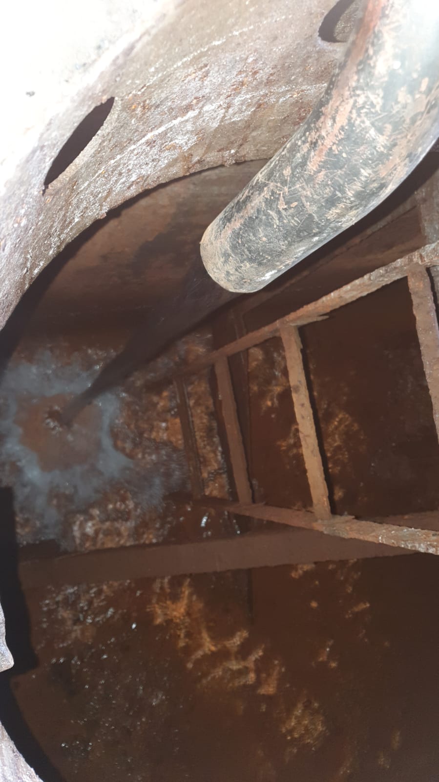 And to make sure that there is not even the slightest leak in the boiler, a colleague has climbed into the firebox and shines a light on the pipe wall. Fortunately, none of the pipes are leaking water.