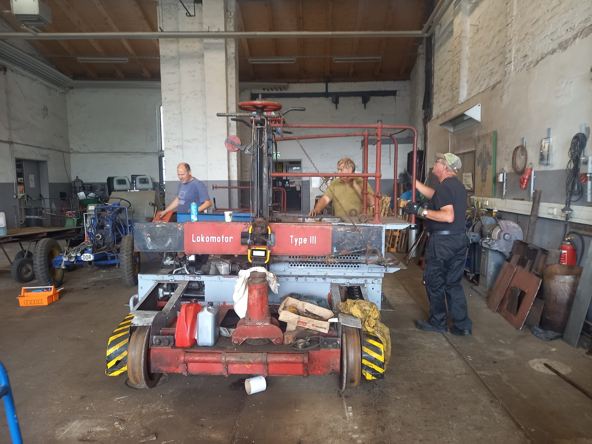 Unfortunately, the museum burnt to the ground in the mid-1990s after an arson attack, which also affected the shunting tractor. As there was no longer any future for it there, its owner handed the vehicle over to us on permanent loan in 2002. Some time ago, we decided to restore the vehicle to working order and thus commemorate the factory goods transport that also took place in Wittenberge on a large scale (e.g. sewing machine factory, oil mill, gas works).