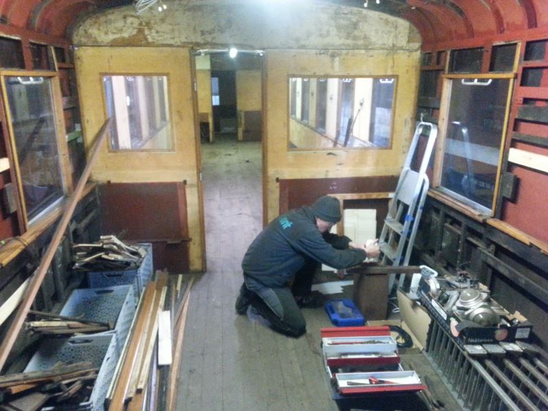 First a few words on progress of restoring railcar trailer VB 197 805: the passenger accommodation was completely stripped out some time ago.