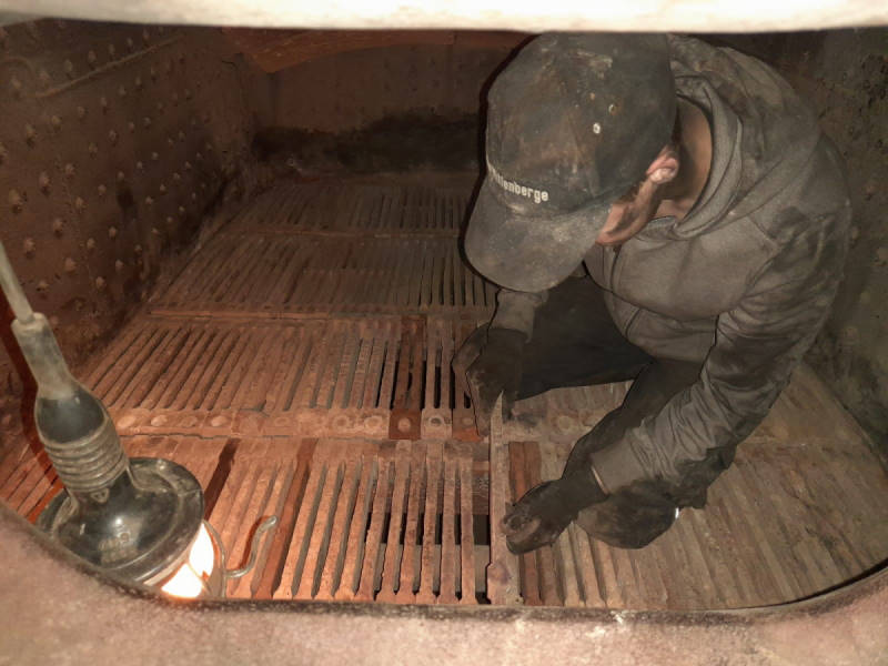 The small steam locomotives were placed on the examination pit under the open sky and slagged out. Afterwards the boilers were drained to avoid frost damage in winter.