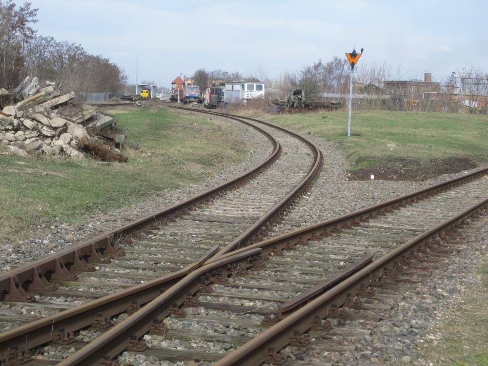 On this picture is seen the track connection taken into service in 2016 to join the track layout in the museum at the loco shed on the one hand with the track layout on the former Magdeburg side of the station. The track was laid from scratch.