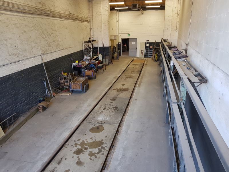 Am Samstag, den 18.5.2019, konnte das Werkstattgleis in Schuppenstand 1 fertig gestellt werden. Im Rahmen der Rekonstruktionsarbeiten am Gleis wurde der Untergrund stabilisiert, neue Schienen verlegt und der Betonboden der Schienenhöhe angepasst. Zuletzt wurden noch neue Platten zwischen den Schienen verlegt und die Platten vor dem Lokschuppen, die als provisorische Zufahrt dienten, werden entfernt.