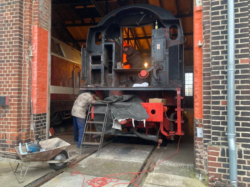 Mit großen Schritten nähert sich die Fertigstellung des Tenders für die Dampflok 50 3570. Noch waren einige Blecharbeiten zu erledigen. Aber auch Rostschutzfarbe konnte aufgetragen werden.