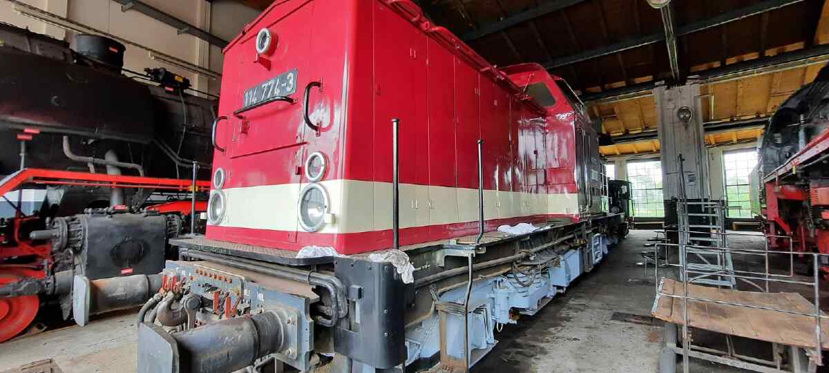 Die Arbeiten werden bei den Schienenfahrzeugwerken Wittenberge, unseren Nachbarn, durchgeführt. Diese Firma ist für solche Arbeiten ausgerüstet und zertifiziert. Wer übrigens Lust hat, bei den Nachbarn einmal hinter sonst verschlossene Türen zu schauen, dem sei der 9.9.2023 empfohlen.