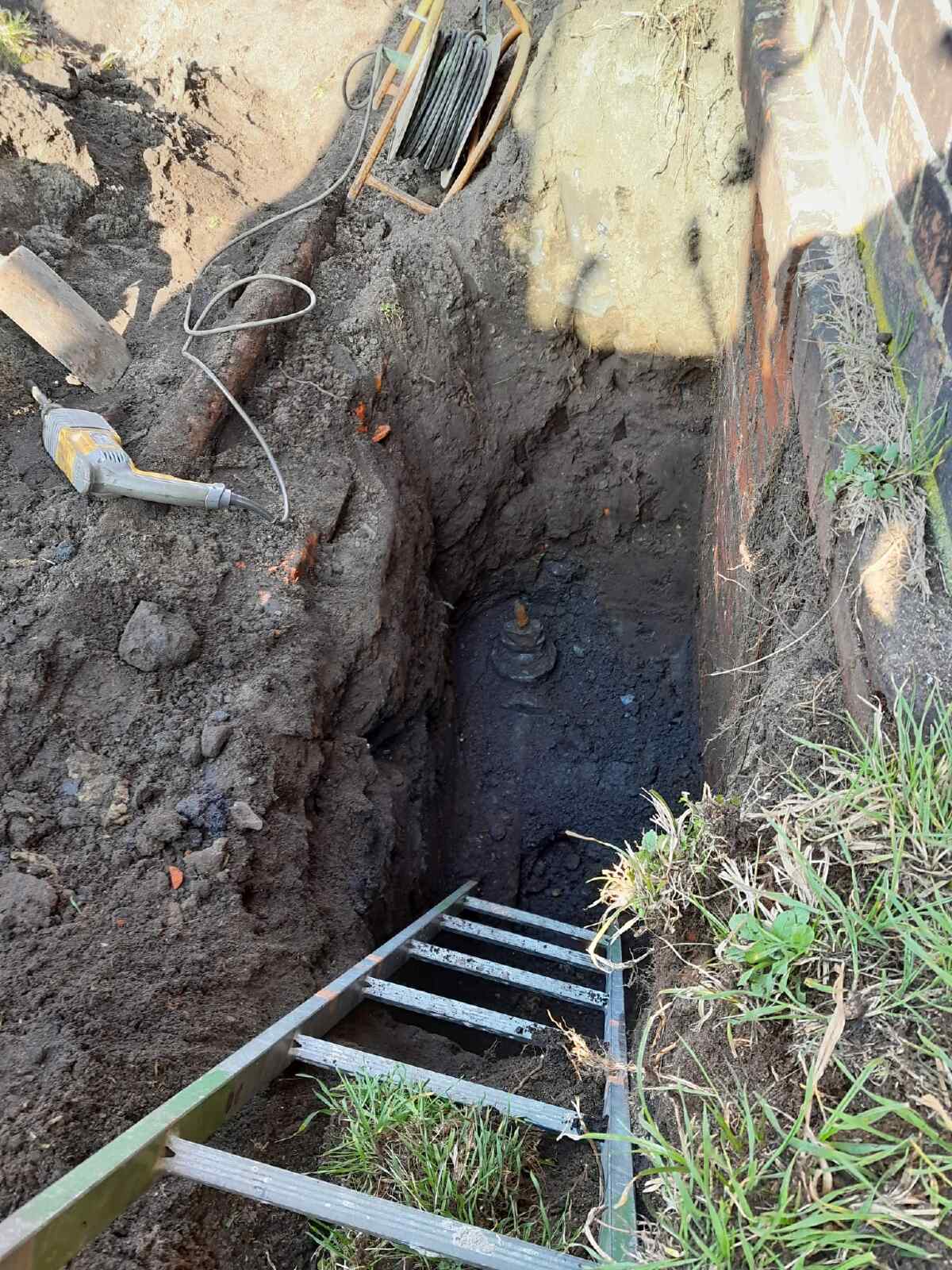 Beim Befüllen des Wasserturms nach der Winterpause stellten wir fest, dass irgendwo außerhalb des Turms Wasser versickerte. Wie sich herausstellte, war eine Transportleitung zum ehemaligen Kohlenlagerplatz undicht geworden und das Wasser versickerte dort im Gelände. Nun musste der Absperrschieber für diese Leitung gefunden und geschlossen werden. Zum Glück fand er sich nahe des Wasserturms.