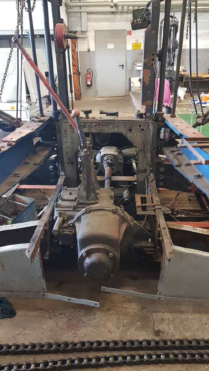 Auch unsere Werkstatt war in Betrieb. Neben der LGB-Eisenbahn war noch unser Rangiertraktor aus dem Hause Breuer zu bewundern. Um ihn war es einige Zeit still geworden, weil andere Arbeiten drängten. Am Wochenende wurde aber unter den Augen der interessierten Besucher der Motor, das Getriebe und die Kardanwelle eingebaut, so dass wir seinem ersten Einsatz zum Herbstdampf im Oktober 2024 entgegenfiebern.