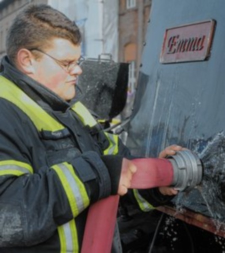 Ehrenamtlich im Einsatz: Kamerad Martin Beye sorgt beim Wasser für Nachschub. |